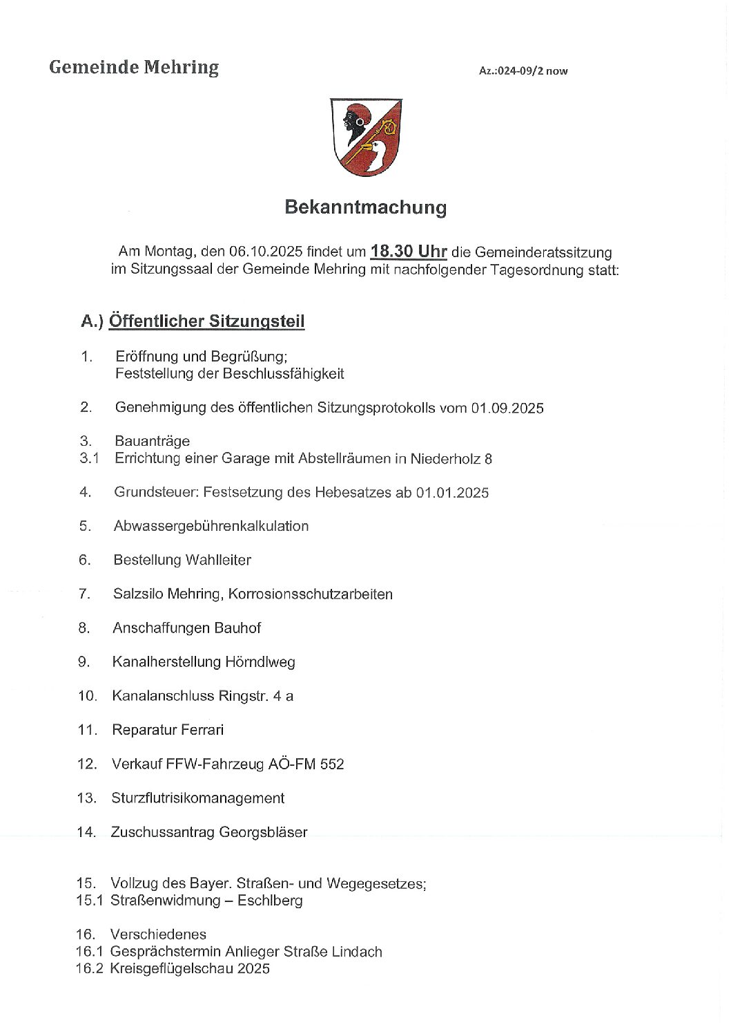 Wichtige Themen rund um die Gemeinde Mehring und nähere Umgebung. Veranstaltungen finden Sie hier ebenso wie Bekanntmachungen unserer Gemeinde. Detailliertere Informationen des Gemeindegeschehens finden Sie unter Aktuelles.